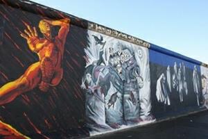 Von der Oberbaumbrücke erstreckt sich bis zum Ostbahnhof Berlin die sog. Eastside Gallery, ein 1.300 Meter langes Stück der Berliner Mauer, das nach der Wiedervereinigung von internationalen Künstlern bemalt wurde. Mit den Bildern auf der Ostseite der Mauer werden die politischen Veränderungen seit 1989/90 kommentiert. Unten seht ihr eine kleine Auswahl. Sich die Eastside Gallery anzuschauen, ist in jedem Fall zu empfehlen. | |