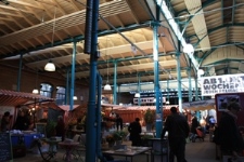 | Zur Geschichte der Markthalle: Der Bau der Markthalle erfolgte Mitte des 18. Jahrhunderts, wo Missernten zu einer extremen Verteuerung der Grundnahrungsmittel führte. Da die Stadtbevölkerung Sturm lief und begann, Wöchenmärkte zu plündern, wurde begonnen, zentrale, überdachte Markthallen zu bauen, die leichter zu überwachen waren. Die Bombenangriffe des Zweiten Weltkriegs hat die Markthalle IX relativ unbeschadet überstanden. Doch die Schäden der näheren Umgebung hatte negative Folgen und durch den Mauerbau waren die Hallen plötzlich vom Hinterland abgeschnitten. Zudem flaute das Interesse am Marktangebot ab. | |