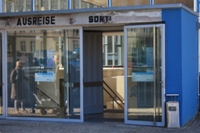 | In der Friedrichstraße befindet sich in Erinnerung an den wohl bekanntesten DDR-Grenzübergang Checkpoint Charlie in der Mitte der Straße ein originalgetreuer Nachbau der ersten Kontrollbaracke. Der original Kontrollpunkt wurde bereits vor der Wiedervereinigung abgebaut. Soweit ich gelesen habe ist er heute im Ü AliiertenMuseum zu besichtigen. | ||