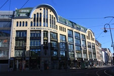 | Am Alexanderplatz steht das unter Denkmalschutz stehende Pressehaus. Das Gebäude wurde als Haus der Berliner Verlage zu DDR-Zeiten als Konkurenz zum Axel Springer-Haus in West-Berlin errichtet. | |