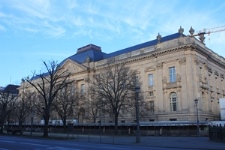 die Zukunft auch ein öffentliches Museum geplant. Im zweiten Weltkrieg wurde das Gebäude stark beschädigt. Jahrelang fanden Restaurierungsarbeiten statt, so z. B. an der Fasssade Unter den Linden. Lange war sie komplett eingerüstet, deshalb hatte ich hier zunächt kein Foto abgebildet. Wegen des Innenausbaus war die Bibliothek eine Weile geschlossen, ist aber seit März 2013 wieder für die Öffentlichkeit zugänglich, obwohl noch nicht alles fertig gestellt ist. Regelmäßig finden öffentliche Führungen statt, die auch ich einmal genutzt habe, um das Gebäude ohne einen Bibliotheksausweis sehen zu können. Die Bilder unten davon zeigen von links nach rechts: Rotunde (Eingang Dorotheenstraße), Kunst am Bau (Großer Lesesaal), Gr0ßer Lesesaal, Lesesaal Musik und Bücher. Im März 2017 habe ich dann zufällig gesehen, dass die Fassade Unter den Linden wieder im vollen Glanz zu sehen ist und natürlich sofort ein Foto für euch gemacht (s. rechts). |