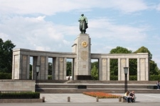 Siemering 1892 bis 1904 angefertigt. Interessant ist auf einer hier stehenden Informationstafel das Foto dieses Denkmals nach Ende des 2. Weltkriegs. Hierauf sieht man im Hintergrund den Reichstag und das sowjetische Ehrendenkmal an der Straße des 17. Juni. |