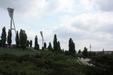 ein großes Hertha-Wandbild abgebildet. Das Stadion existiert zwar nicht mehr und der Verein hat sich heute nahezu komplett aus dem Bezirk verabschiedet, aber auch für Nicht-Fussballfans ist es doch sehenswert. |