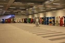 Kleihueshalle, die weitere Ausstellungsflächen sind. Nennenswert ist der Übergang in die Rieckhallen. Man fühlt sich sofort in eine ganz bestimmte U-Bahn-Station versetzt, nämlich "Alexanderplatz". Die Farbe der auf die Wände aufgemalten Fliesen passen perfekt. Von den Kunstwerken selbst füge ich ganz rechts lediglich ein Bild aus den Rieckhallen ein, da ich sofort an das Deckenkunstwerk des Westflügels denken musste. |