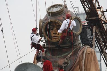 | Am 01.10. und 02.10.2009 konnte ich das Schauspiel nicht besuchen, da ich arbeiten musste. Am 04.10.2009 waren dermaßen viele Menschen in den Straßen unterwegs, dass ich davon abgesehen habe, mich näher an die Riesen heranzuwagen, aus Angst, von den vielen "Liliputanern" erdrückt zu werden. Aber am 03.10.2009 habe ich mir "das Theater" angeschaut und ein paar sehr schöne Fotos machen können: | |||