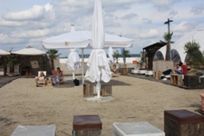 | Seit dem 01.04.2011 ist hier in Berlin wieder der "Capital Beach" geöffnet, eine Strandbar direkt an der Spree gegenüber dem Hauptbahnhof. Täglich ab 10 Uhr kann man hier kühle Getränke, Cocktails oder leckere Gerichte genießen, während man gemütlich unter Palmen in Liegestühlen den Blick auf die Spree und das Treiben hier genießen kann. An warmen Sommertagen ein richtiges Vergnügen. |