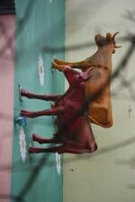 links). Freunde aus Berlin haben mir im November 2010 weitere "Kunst am Bau" im Bezirk Prenzlauer Berg gezeigt. Diese Kunst ist es in jedem Fall wert, hier gezeigt zu werden ... (s. Bilder rechts). Ursprünglich war die Kuhherde an einer Hauswand am Senefelder Platz montiert, wurde jedoch durch den Künstler nach einiger Zeit planmäßig wieder abmontiert. Nachdem er sie restauriert hat, hat er sie auf eine neue "Weide" gebracht. |